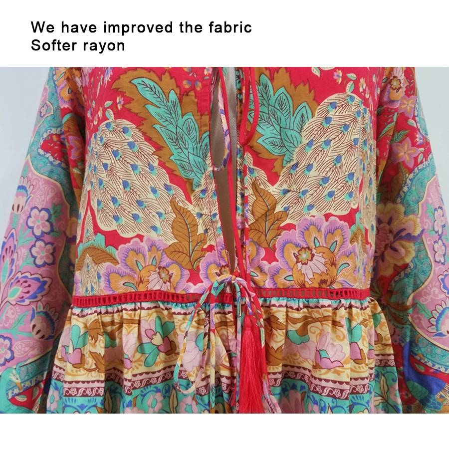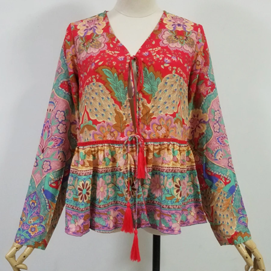 Feature::Peacock and floral print, tassel