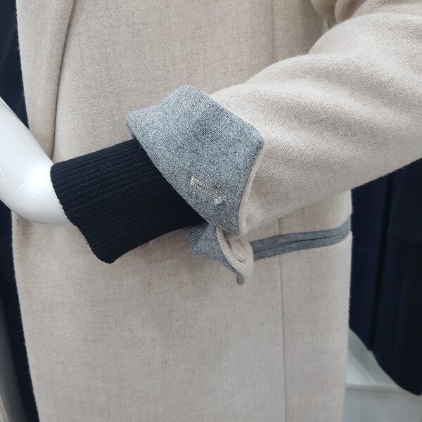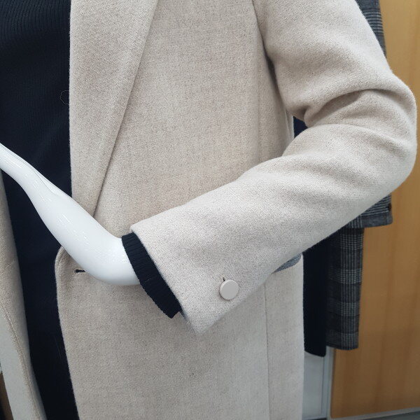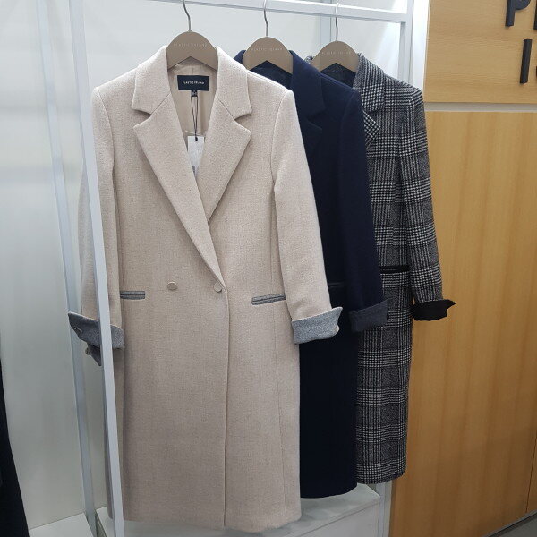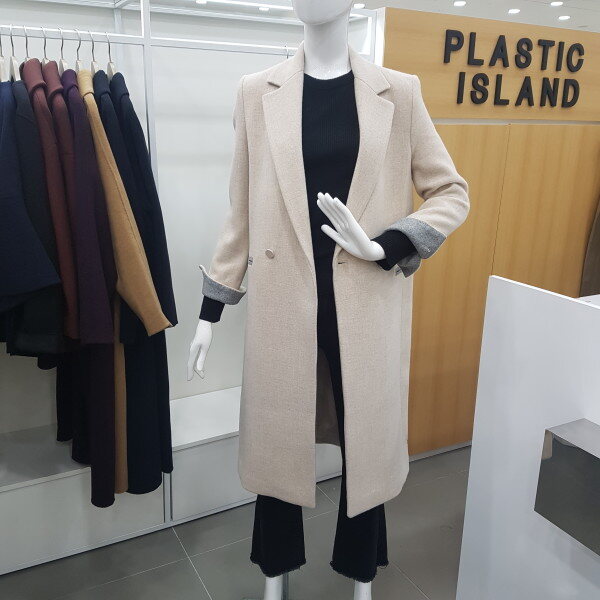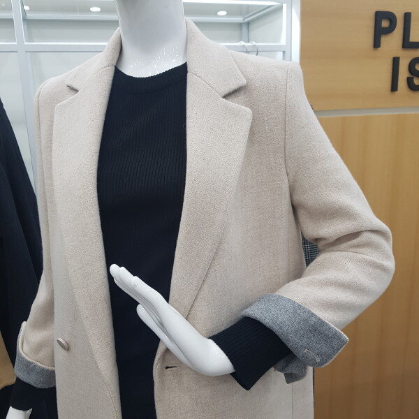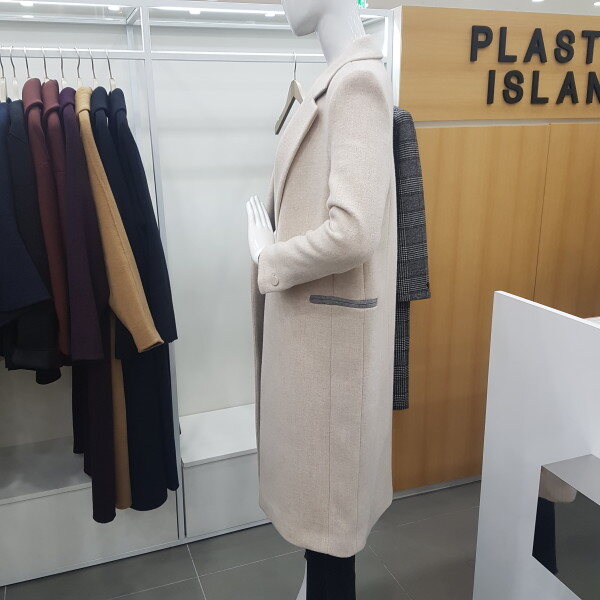 모직울롱코트예요~기본스타일이고 원버튼이라 깔끔하고 편해요 소매부분에 배색이들어가잇어서 접어서 입으셔도 예뻐요 마네킹 착용컬러는 라이트베이지입니다