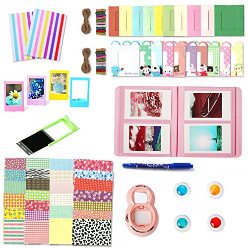 Fujifilm Instax Mini 8 Accessories, Leebotree Camera 8 7s Bundles Set Include Album/selfie Lens/colored Filters/wall Hang Frames/film Frames/border Stickers/corner Stickers/pen (Pink without Bag)