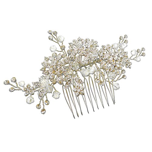 Bridal Comb Headpiece Handmade Floral Hair Comb with Rhinestone and Austrian Crystal (8156)