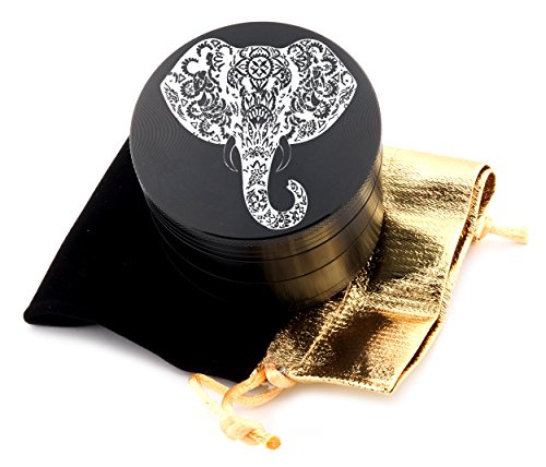 Elephant Laser Etched Design 4pcs Large Size Herb Grinder With FREE Scraper & Velvet Pouch Item # ETCH-G012317-68