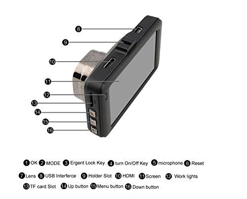 -. Feature : FULL HD & PANORAMIC RECORDING: 3.0-inch 1080p full-HD resolution with up to 170 degree ultra-wide-angle lens and superior WDR night-vision system to ensure high video quality day and night, with panoramic views that encompass both sides of the road and its surroundings. / RELIABLE, SMART & AUTOMATIC: In-built G-sensor detects ignition, motion, crash and vibration to enable automatic recording and locking of video files. / HIGH PERFORMANCE EFFICIENCY: Seamless loop video recording ensures efficient use of storage by automatically overwriting unlocked old videos with latest ones. Supporting H. 264 photography compression technology for maximum recording. / EASY TO INSTALL & USE: Lockable suction cup mount for easy and stable installation, plus user-friendly operational interface supporting multiple languages. / SUPPORT MAX. 32GB SD CARD: Comes with a 16GB Micro SD card for your convenience. NOTE: The built-in battery is mainly used to save files in emergency. Please always connect to external power while it is in use.