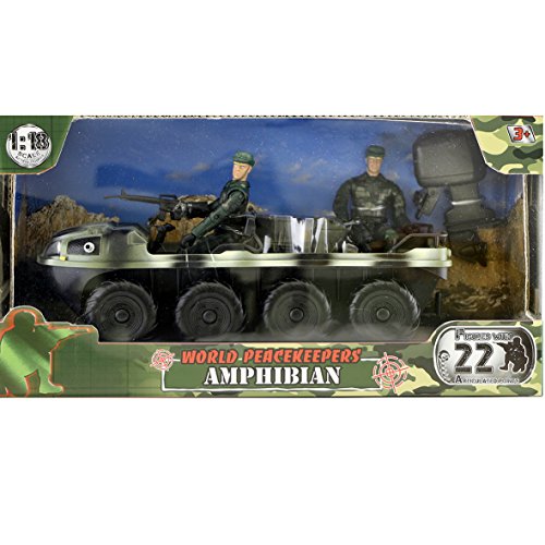 Weltfriedenstruppen Amphibienfahrzeug 7276 22cm Amphibientransportfahrzeug mit Freilaufwirkung und abnehmbarer Außenbordmotor. Inklusive 2 Supergelenk Action-Figuren mit über 21 Gelenkpunkte für eine umfassende Palette von Bewegung und poseability. Die Figuren sind skaliert, um in das Fahrzeug, um 1:18 passen. Authentisch und sehr detaillierten Geräte und Zubehör. Geeignet ab dem Alter von 3 +. Einzelteil-Gewicht 318 g Produkt-Maße 29 x 11 x 15 cmFeature