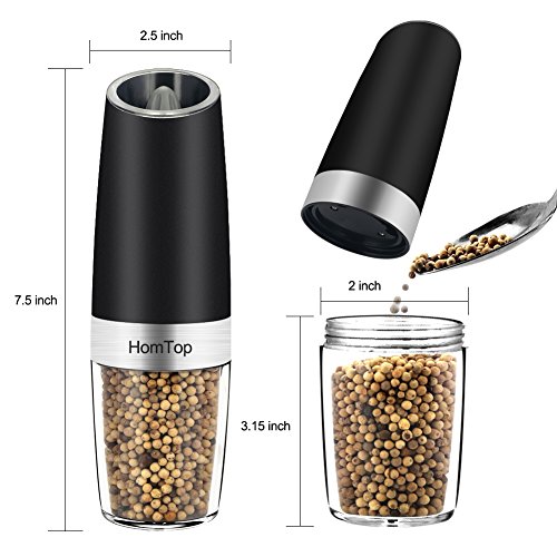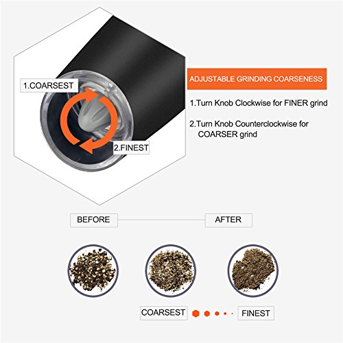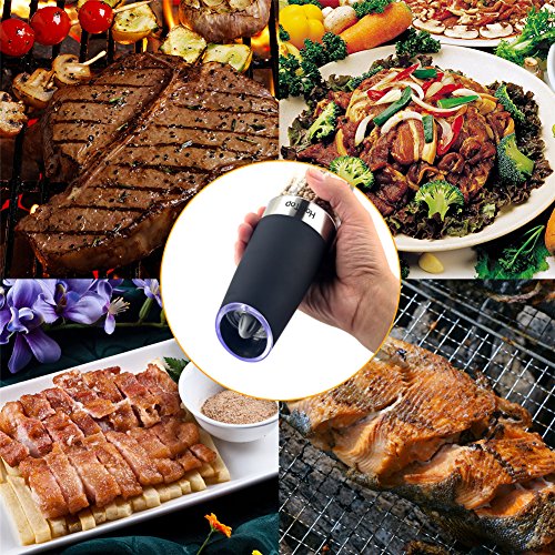 【EASY TO USE】- Battery Powered, no buttons to press or manual grinding. One handed operation, simply tilt to automatically activate the spice grinder. Return to vertical to stop. The blue LED light will turn on automatically when the grinder is in operation.
