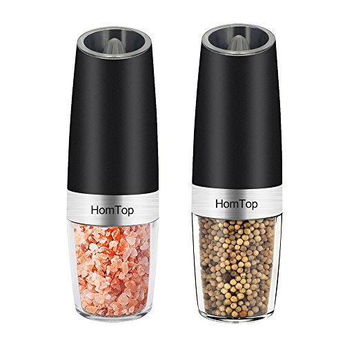 Gravity Electric Salt Pepper Grinder, Stainless Steel Salt and Pepper Mills with Automatic Battery Powered, Adjustable Coarseness Ceramic Mechanism, Blue LED Light (2)