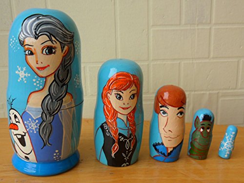 -. Title : "Frozen" Russian nesting Doll Set of 5 piece. Hand-painted in Russia.
