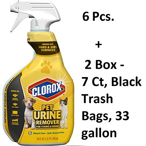 -. Feature : This OFFER includes () - 24 ounce spray bottle of Clorox Pet Urine Remover for Stains and Odors +++ Freebies +++ TWO (2) - 7 Ct, Black Trash Bags, 33 gallon / Removes both urine stains and odors from multiple surfaces / Use inside and outside your home or business / Perfect for pet stains / Bleach free, safe around pets