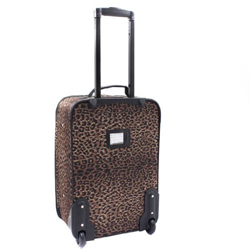 -. Brand : Rockland -. Color : Leopard -. Department : womens -. EAN : 0675478125045 -. Feature : 600-denier EVA-molded hi-count polyester fabric and is 25% expandable / Fully lined interior, spacious main compartment and internal organizational pockets / In-line skate wheels, silver pewter hardware, retractable handle system, padded top and side grip handles / Dimensions: 24" H x 14" L x 8" W - 9 lb / Weight: 9.0 lb -. Label : Fox Lage -. Manufacturer : Fox Lage -. MPN : F125-LEOPARD-24 -. PackageQuantity : 1 -. PartNumber : F125-LEOPARD-24 -. ProductGroup : Apparel -. ProductTypeName : LAGE -. Publisher : Fox Lage -. Size : One Size -. Studio : Fox Lage -. Title : Rockland 24" Expandable Upright Lage Suitcase - Leopard -. UPC : 675478125045