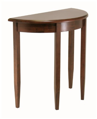 -. Feature : Color: Antique Walnut / Size: 30"H x 32"W x 15.9"D / Classic half moon design / Antique walnut finish / Tapered legs