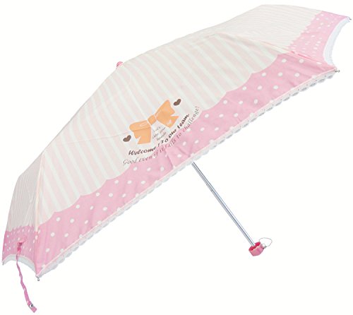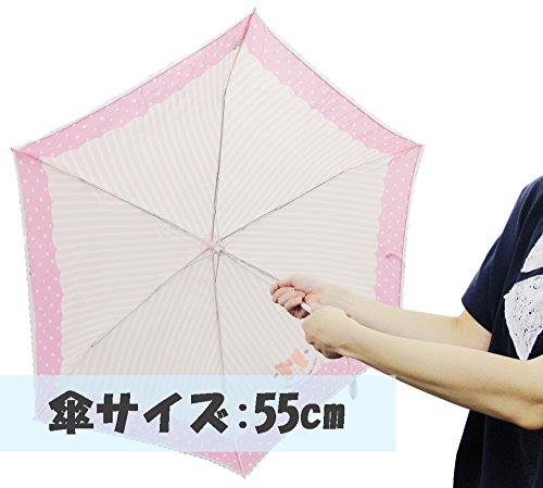 -. Title : カムアクロス 折りたたみ傘 55cm Rire Rire girls ストライプレース ピンク RE-144D30