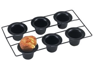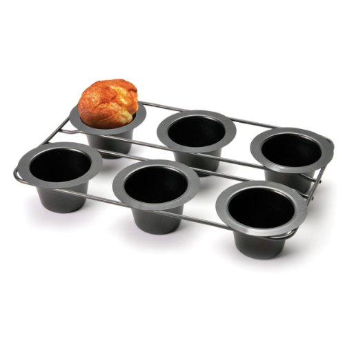 Product Description Make perfect popovers with this popover pan! A linking popover pan is the easy way to make popovers! Popovers are scrumptious and so magical to make. Just mix them up and bake. Popovers work better in a popover pan. The linked design allows for more efficient baking, better air circulation, and easier handling. This nonstick, heavy-duty pan comes with recipes. It is easy to clean and durable. You can make all kinds of popovers with this pan. Here are some of our favorite recipes: * Buttery Popovers * Cheddar, Chive, and Bacon Popovers * Apple Pie Popovers * Cheese and Herb Popovers