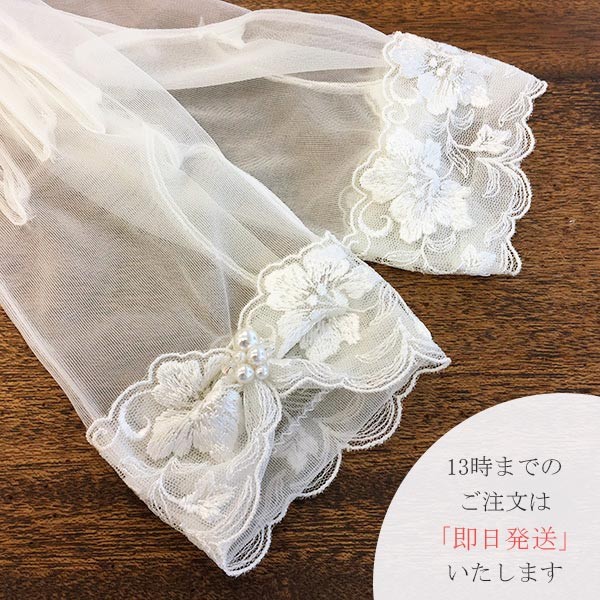 | | 商品のバリエーション | | オフホワイトのみ | | サイズデータ | グローブサイズ22cm、甲の中心サイズ19cm (着用していない状態で、指先から入り口まで) | | 素材 | ナイロン100% レース パール スワロフスキービーズ | | 取り扱いについて | | グローブの生地やレースは繊細なものですので、場合によっては少しのひっかかりなどでも、糸ひけなどが発生する場合もございます。お取り扱いに気をつけてください。 |