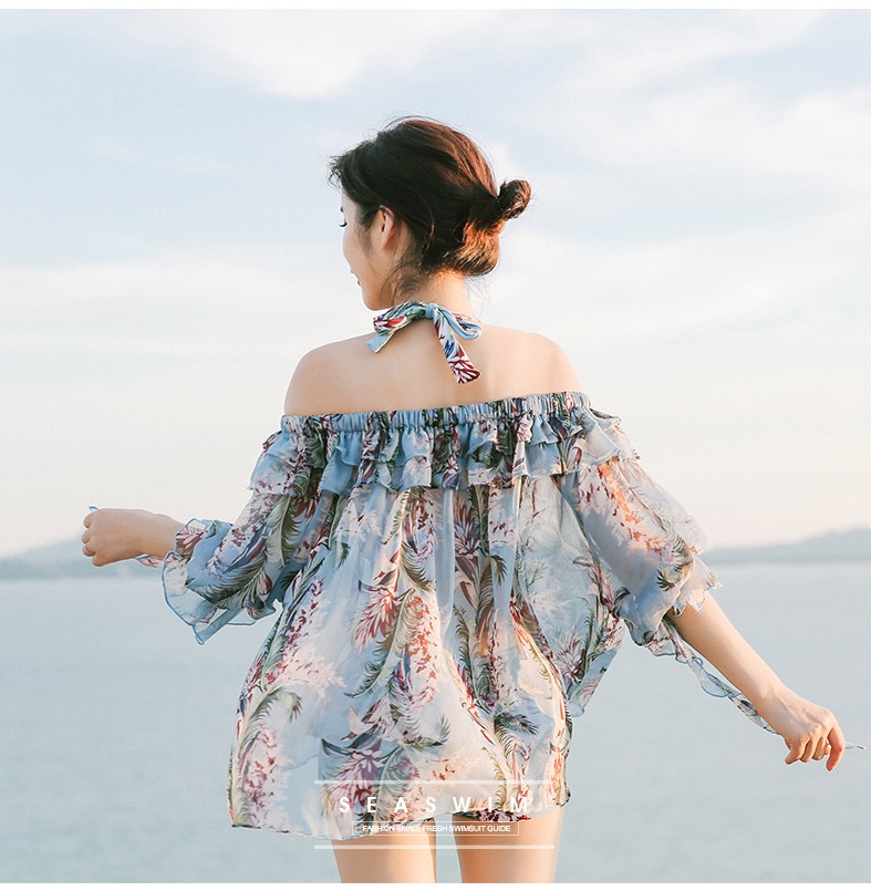 オフショルダートップス付きで、体型カバーにもおすすめの一着。