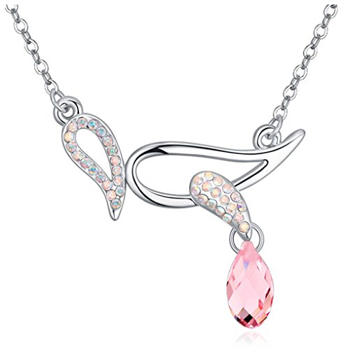 -. Title : Swarovski Elements Crystal Light Rose Red Waterdrop Angel wings Pendant White Gold Plated Chain Necklace