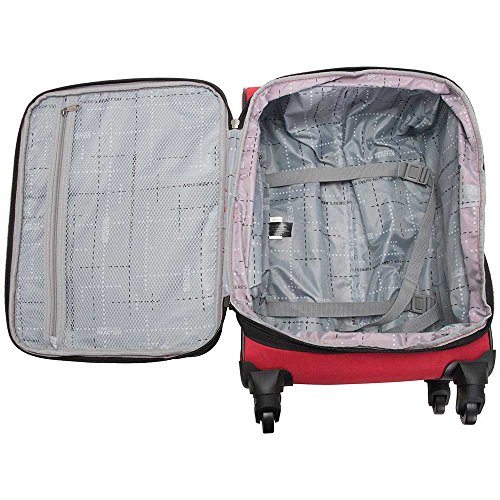 Product Description Expands An Additional 1.5" Inches For Added Carrying Capacity When NeededMulti-Directional 4-Wheel Spinners Allow Smooth, 360° Degree Movement Over Any Rough Surface For Complete Mobility Free-Weight Rolling, Relieving Any Pressure From Your Arms While On The MoveLightweight Construction600D Polyester And Dobby Polyester Exterior With Fully Lined Navy Printed Tear-Resistant InteriorSelf-Repairing Coil Zippers For Long-Lasting UseDual Front Exterior Zip Down Pockets For Additional Storage And Quick Access To Commonly Needed ItemsMain Compartment Interior Contains A Full Length Side Zipper Pocket, Garment Restraints To Securely Keep Belongings In Place, And A Full Length Mesh Zipper Pocket Under The LidFlexible Top And Side Handles Allows For Easy LiftingRear Exterior Features A Business Card Sized I.D. HolderSturdy Locking Retractable Push-Button Telescopic Trolley Handle Conductive For Simple, One-Handed UseMeets Most U.S. Based Airline Carry-On Size Requirements And Fits Into Most Airline Overhead Bin Compartments_x000D_ Overall Size: 21.5" H x 14.0" L x 10.0"?11.5" D_x000D_ Weight: 6.6 lbs 0