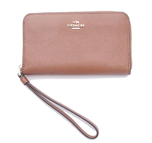 -. Feature : Crossgrain leather, Six credit card slots / Zip coin pocket, Inside phone compartment / Zip-around closure / Wrist strap attached / 6 1/4" (L) x 3 3/4" (H)