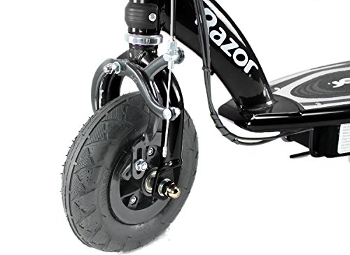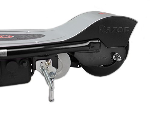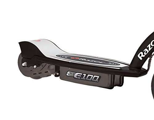 Thrill and power combine for a scootin' good time on the Razor E100 Electric Scooter. Whether you are taking a quick whip around the block or a trip to the neighborhood park, this scooter gets you there in style. With a high-torque, 24-volt, chain-driven motor, you will enjoy traveling at fun speeds up to 10 miles per hour. It has a twist grip throttle acceleration control and hand-operated rear brake. You can cruise around for up to 40 minutes of continuous use and recharge the battery in no time. The kids-sized deck and frame is awesome for kids who love being outside zooming around with the neighbors. If your child has the need for speed, this Razor E100 Electric Scooter is ready for the thrill.Feature
