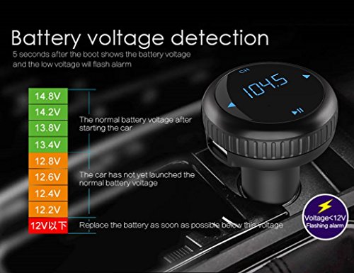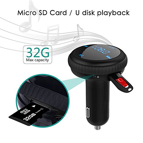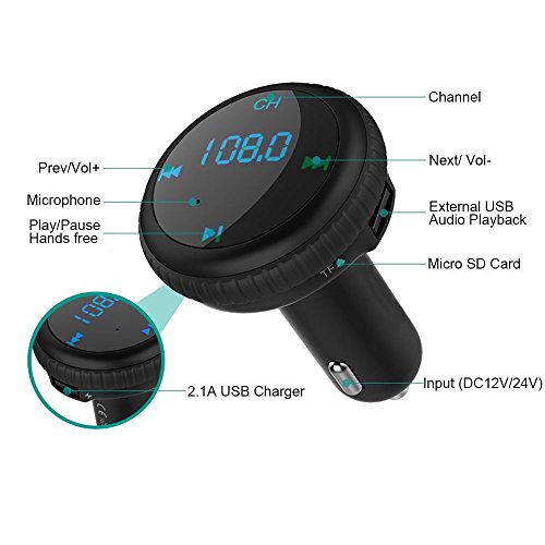 BLUETOOTH FM TRANSMITTER BROAD COMPATIBILITY:wireless in-car FM Transmitter works with most Bluetooth enabled devices, such as iPhone, Samsung, HTC, LG, Blackberry,Tablet and iPad etc.You can also insert U disk or micro SD card to play the MP3 file. FM 87.5-108.0MHz full channels covered.(The sound would be better if you tune the channel to 106.0~108.0)