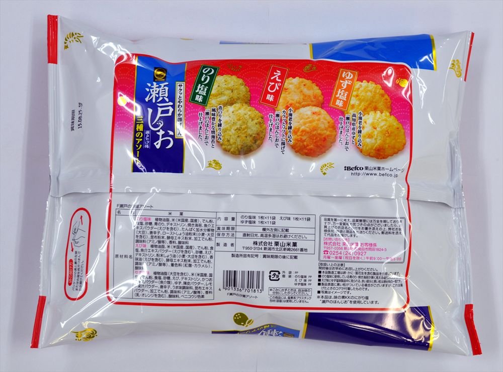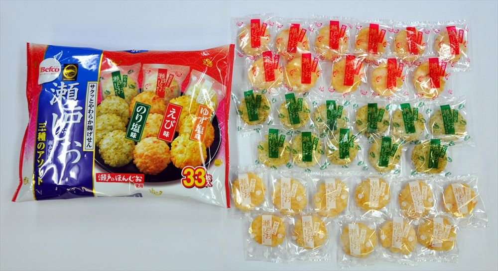 We commercialized large-sized bag products that were requested as three types of assorted plus shrimp, grated salted with new Yuzu salty taste of "Shodo of Seto" regular shrimp.