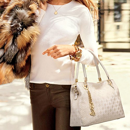 Features - Color: White. - Material: PU andamp; Polyester. - Hand Bag Size: Approx. 33 * 14 * 24cm/ 13 * 5.5 * 9.45 inch(L*W*H). - Tote Bag Size: Approx. 24 * 17cm/ 9.45 * 6.7 inch(L*W). - Crossbody Bag Size: Approx. 17 * 12cm/ 6.7 * 4.7 inch(L*W). - Wear resistant and shock resistant with soft, strong and durable texture for comfortable carry. - Elegant and gorgeous look with strongly zippered sturcture. - With inside and outside pockets design, can storage your business cards, phone, wallet, and some small Article. - Perfect handbag choice and nice gift options for female friends.