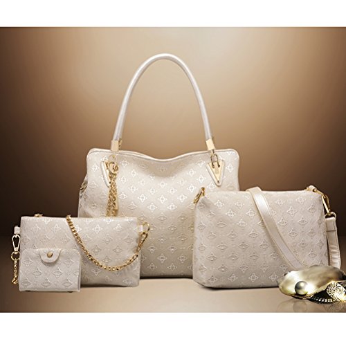 Package Including 4 * Women's Leather Handbags Top Handle Shoulder Bag Tote Bag Crossbody Bag Wallet (White) 0