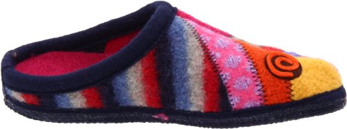 Your day just got a lot brighter with the Haflinger Calypso slipper. This indoor women's clog-style slipper has a boiled wool upper offered in a festive, stitched rainbow of colors that is sure to put a smile on your face. The contoured footbed includes arch support to energize every step. The Haflinger Calypso scuff slipper has a wool felt sole equipped with traction dots to keep your footing secure on slick surfaces.