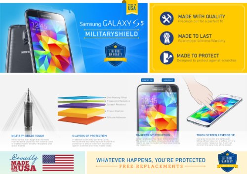 -. Title : ArmorSuit MilitaryShield - Samsung Galaxy S5 Screen Protector Anti-Bubble Ultra HD - Extreme Clarity & Touch Responsive Shield with Lifetime Free Replacements - Retail Packaging