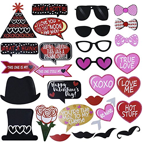 - Comes in various choices for party goers: hat, heart, mustache, lips, heart eyeglasses, bowtie, flower, XOXO sign...full valentines atmosphere.