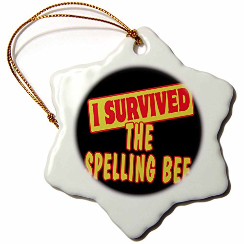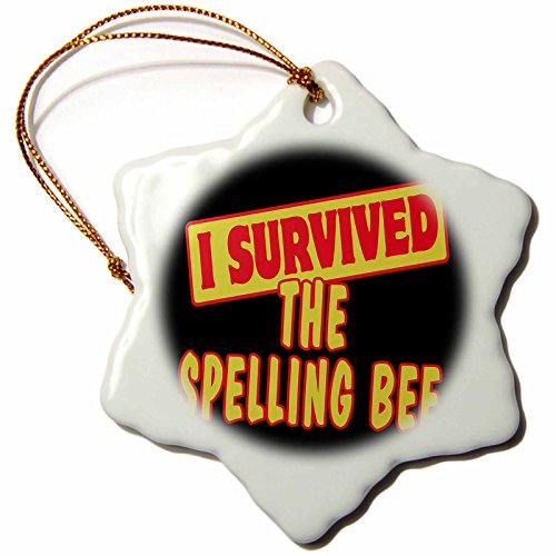 3dRose orn_118388_1 I Survived The Spelling Bee Survival Pride and Humor Design Snowflake Ornament, Porcelain, 3-Inch