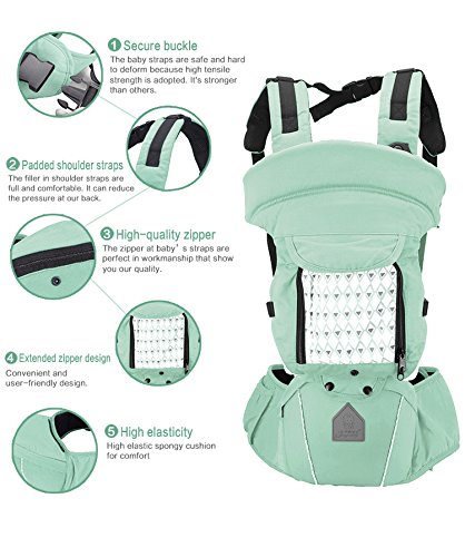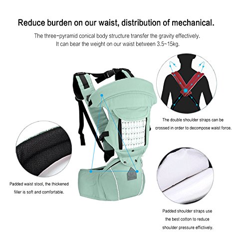 Comfortable carrying Additional shoulder pads and support waist belts evenly distribute the child's weight. The adjustable strap creates a comfortable fit for all types of parents.
