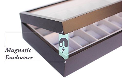 -. Feature : Give your watches a home they deserve with this SOLID, SLEEK watch box. Our refreshing design carefully incorporates deep ridges, straight lines, and a REAL GLASS display. / We've simplified closing your watch box with our timepiece safe MAGNETIC ENCLOSURE, ensuring the lid stays tightly locked in place. / Our ultra soft watch pillows have been designed to fit most sizes and styles of watches, including large faced watches, watches with small bands, and various other styles of men's and women's watches. / With twelve slots to fill, you now have the perfect reason to go searching for your new timepiece.