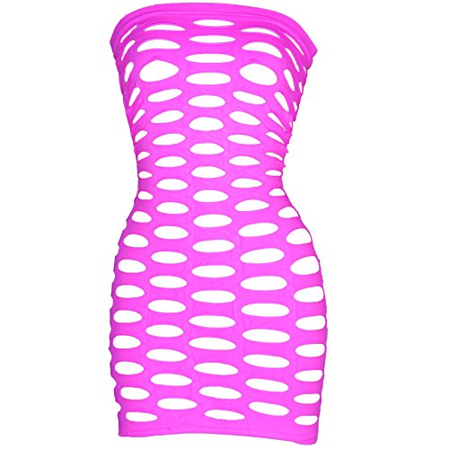 The way this hot NEON stretch tube dress works on your body is awesome! It's up to you what you wear underneath, but the Swiss cheese holes can be arranged "just so" to cover nipples and a panty can be added. However you decide to wear it, layer it or show it off, you will be unforgettable! Fits up to 175 lbs. Did we mention that this dress is black light receptive? Replace the light bulb your bedroom lamp with a "black light" bulb. Wow! Hand Wash/Hang DryFeature