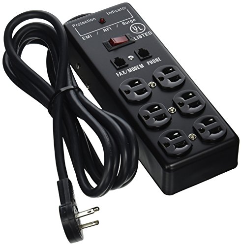 eDragon ED70524 Surge/Modem Protector, Flat Rotating Plug, 6 Outlet, Black, Metal, Commercial Grade, Power Cord, 10-Feet