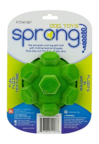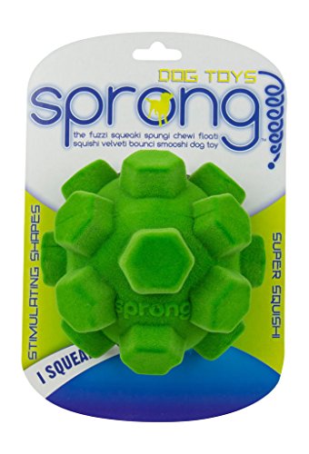 -. Feature : Sprong! toys combine a soft, velvety outer-layer with a super squeezy, rubber foam inner-layer that's designed to be gentle on dogs' jaws and teeth. / Sprong! toys are great for senior dogs, gentle chewers or dogs with dental issues | Not suitable for heavy chewers, and puppies who like to shred toys! / Squishy foam makes Sprong! toys ultra-bouncy & a super-sensitive squeaker guarantees a squeak with every bounce. | The innovative design that is engineered to be dog-friendly / The Sprong Large Hex Ball is great for a game of fetch and a good size for large dogs / Pets should always be supervised when playing with this or any other toy. Remove toy from pet if any part becomes loose, damaged or detached. Intended for pets only. Not a children's toy