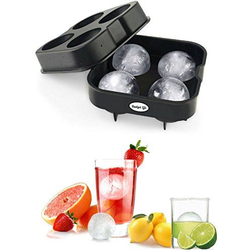 Big novelty flexible silicone ice ball maker mold tray. Set of 4 large 2” inch spheres shapes.Make giant spherical bar,whiskey,cocktails,scotch,sphere cubes.Best BPA free round cube balls molds trays