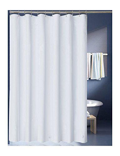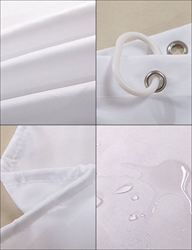 PACKAGE INCLUDES - 1 fabric shower curtain and a set of 12 white plastic hooks