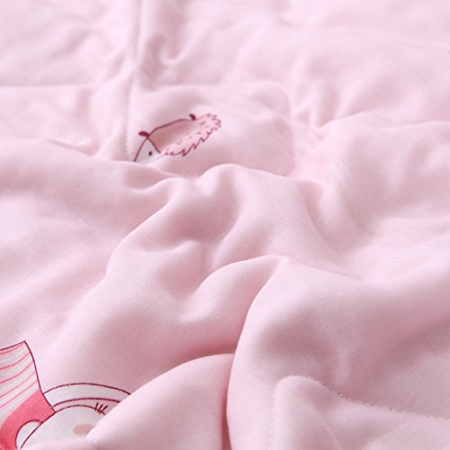 Product Description Color Design Cute beautiful cartoon designs is so loved by boys and girls Natural Environmental Made from natural materials, no harmful chemicals and synthetic materials are added, anti-allergy, antibacterial, anti-mite, health to your family skin and body Natural, soft, cozy, breathable comfortable for all season use. Multi-usable The water washed cotton comforter is light weight, can be a coverlet for bed and sofa, even outdoor traveling and picnic. keep your baby in peace and love, a sound sleep. Wash and Care GENTLE MACHINE WASH IN COLD WATER, HANG DRYING or low tumble dry, Do not dry-clean