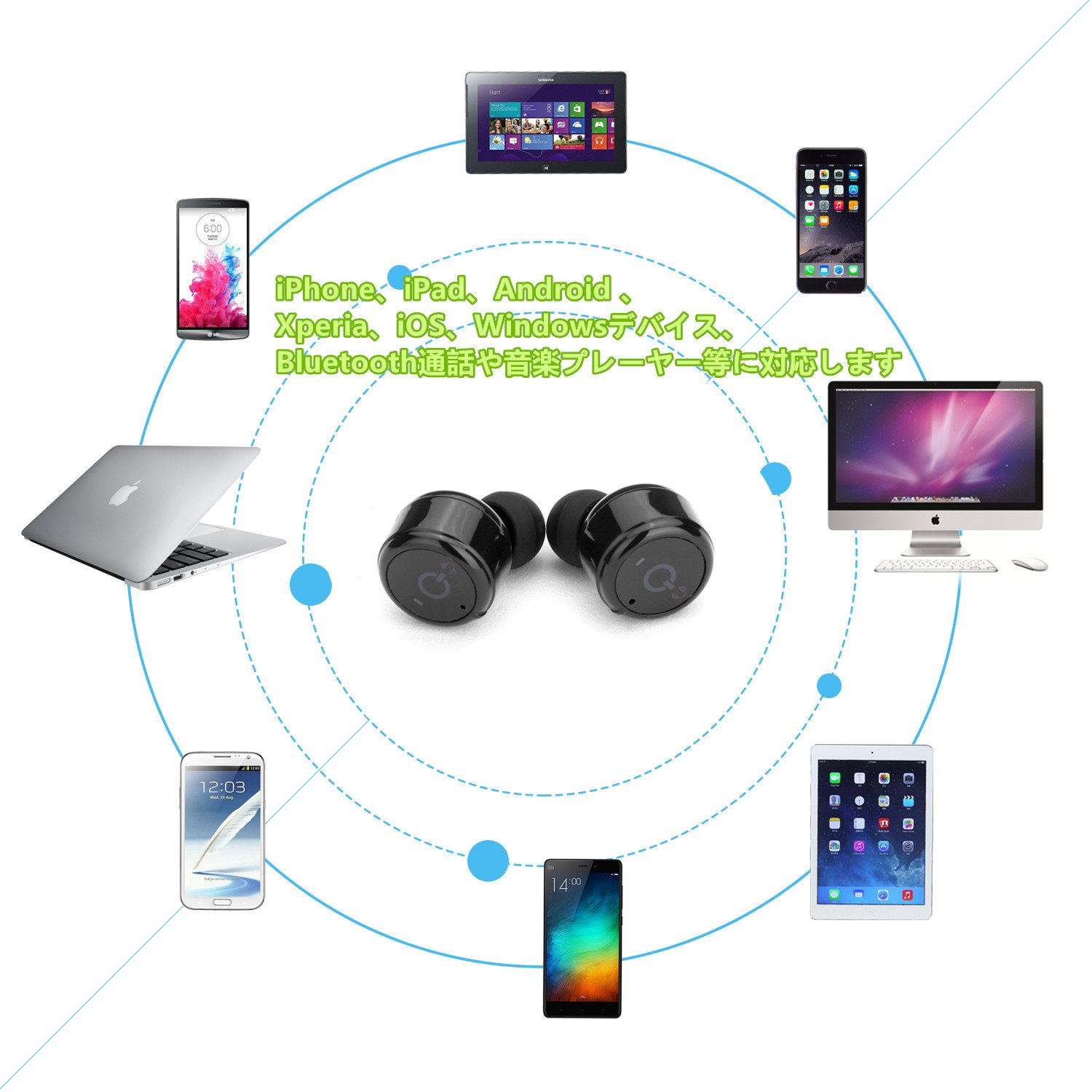 It corresponds to iPhone, iPad, Android, Xperia, iOS, Windows device, Bluetooth call, music player, etc.