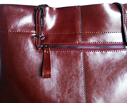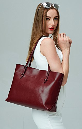 Covelin Women's Handbag Genuine Leather Tote Shoulder Bags Soft Hot Wine red