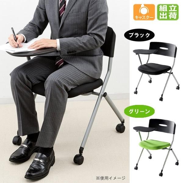 研修などに便利なメモ台付きミーティングチェアです。キャスター付きで移動がスムーズ、前方向に次々チェアを重ねていけるネスティング機能で、省スペースに収納できます。メモを取るのに便利なメモ台付きです。メモ台は折り畳んで収納することもできます。 |