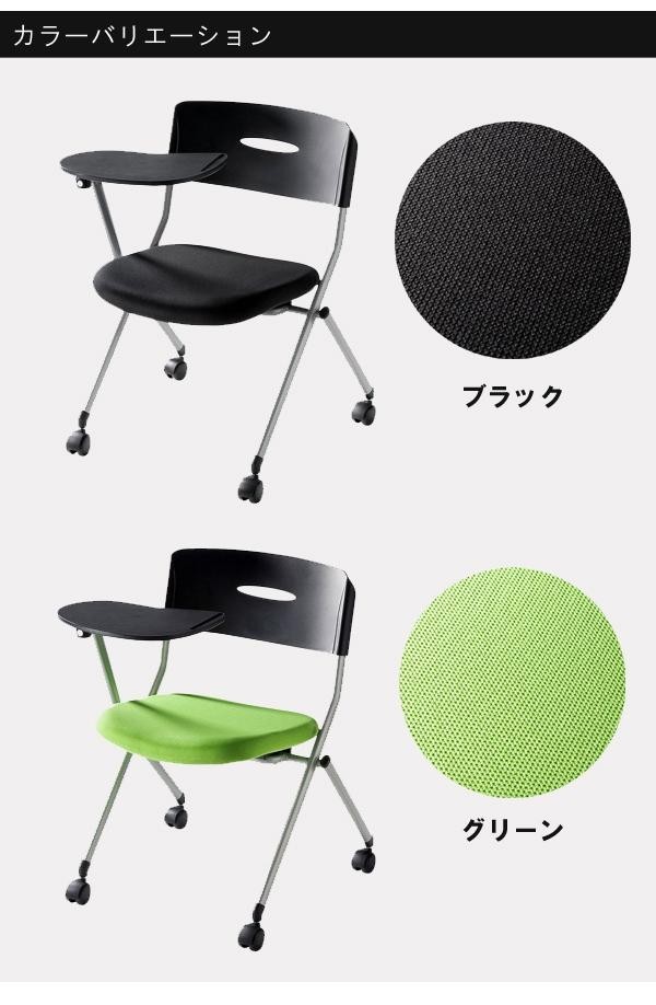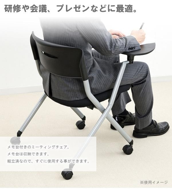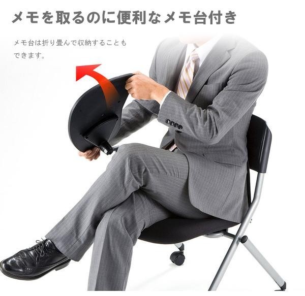| 収納可能なメモ台付きのミーティングチェア。 |
