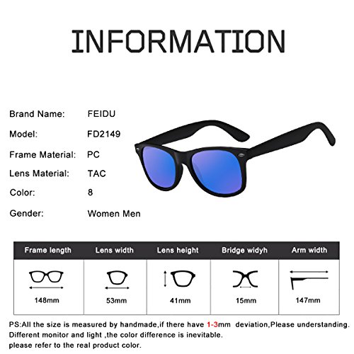 FEIDU FD 2149 Polarized Wayfare Sunglasses Features The Filter Category of these Sunglasses is 3: General Purpose Sunglasses. Purchase from WSUK with confidence that the glasses you receive are fully CE certified and 100% UV400 protective.