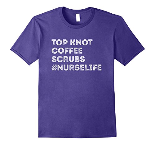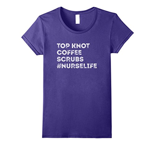 Womens Top Knot Coffee Scrubs #Nurse Life Shirt Funny Nursing Gift Small Purple