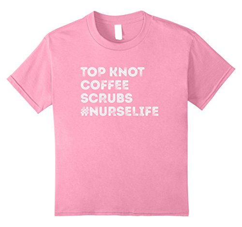 Kids Top Knot Coffee Scrubs #Nurse Life Shirt Funny Nursing Gift 12 Pink