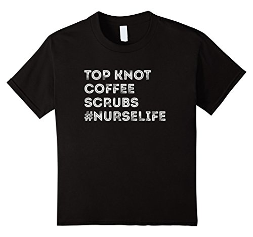 Kids Top Knot Coffee Scrubs #Nurse Life Shirt Funny Nursing Gift 8 Black