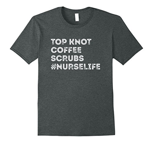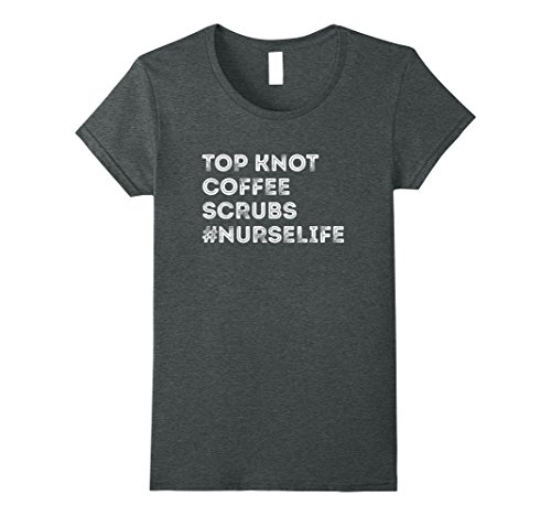Womens Top Knot Coffee Scrubs #Nurse Life Shirt Funny Nursing Gift Large Dark Heather