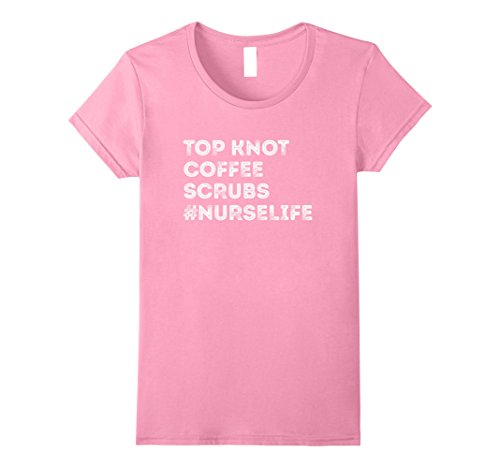 Womens Top Knot Coffee Scrubs #Nurse Life Shirt Funny Nursing Gift Small Pink