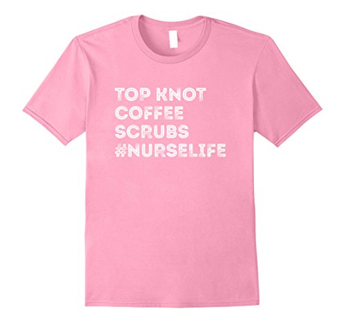 Womens Top Knot Coffee Scrubs #Nurse Life Shirt Funny Nursing Gift Medium Pink