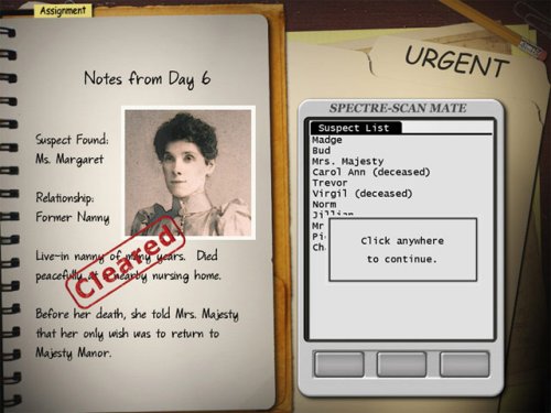 You are an investigator for G.H.O.S.T. Hunters and have been called to Majesty Manor to investigate a possible haunting or to uncover a cruel hoax. Search for clues, using the fantastic hint feature if needed, and generate a list of suspects as you progress through 19 unique environments. You can then eliminate suspects as you rush between the dark, shadowy attic and the haunted rooms in a final heart-pounding race against time! Can you solve this haunted mystery?