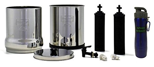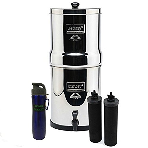 Big Berkey Stainless Steel Water Filtration System w/ 2 Black Filters and Berkey Stainless Steel Bottle - Blue